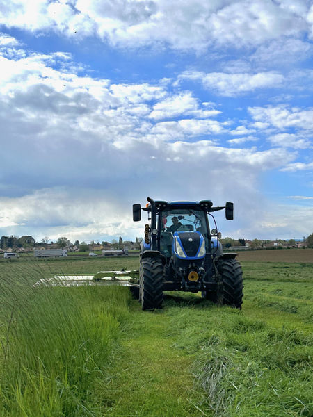 Fauchage de l'herbe pour les vaches de l'exploitation et préparation pour l'ensilage.